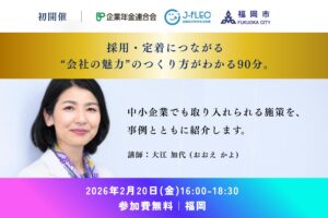 企業型確定拠出年金の導入支援をしている株式会社アーリークロス様より、セミナーのご案内です。 福岡開催「採用・定着につ…