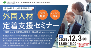 東京都 観光産業外国人材活用支援事業~外国人材定着支援セミナー(観光関連事業者向け)のお知らせ