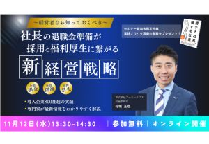 セミナーのご案内「社長の退職金準備が“採用と福利厚生”に繋がる、新・経営戦略」(アーリークロスより)