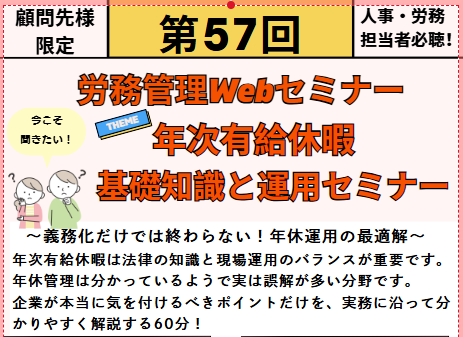 顧問先様に向けた( 第57回 )労務管理Webセミナーの開催のお知らせ