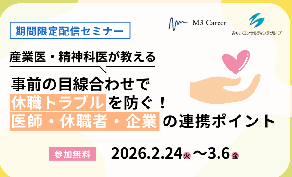 事前の目線合わせで休職トラブルを防ぐ! 医師・休職者・企業の連携ポイント 期間限定配信セミナーのおしらせ!(みらいコンサルティンググループ)