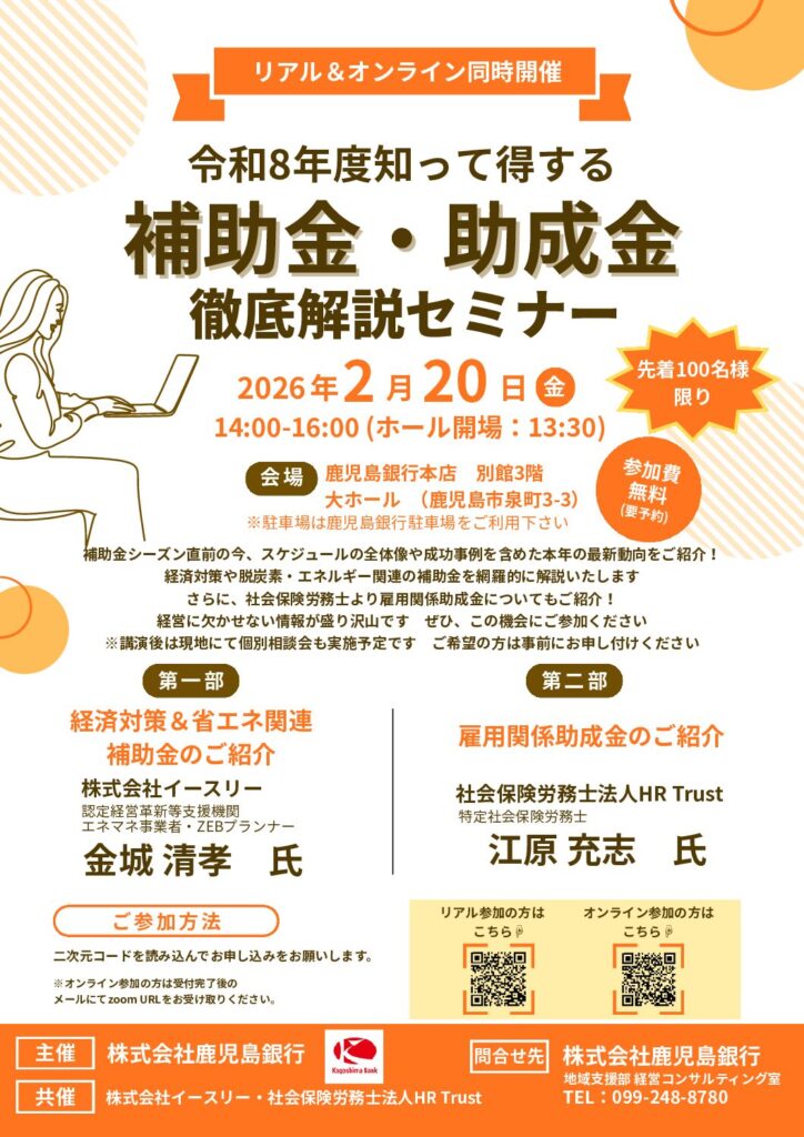 令和8年度 補助金・助成金徹底解説セミナー開催!( 鹿児島銀行 )