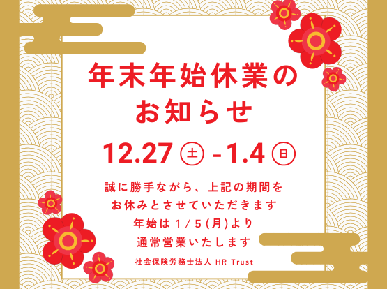 平素は格別のご高配を賜り、誠にありがとうございます。 弊社では年末年始にあたり、下記の通り休業とさせていただきます。 ◆ 休業期間 2025年12月27日(土)~2026年1月4日(日)◆